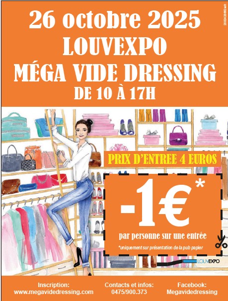 Les manifestations MegaVideDressing : un espace couvert dédié pour que vous vendiez dans les meilleures conditions vos vêtements pour hommes, femmes & enfants, ustensile puéricultrice de 1ère enfance, maroquinerie et bijoux deuxième main.