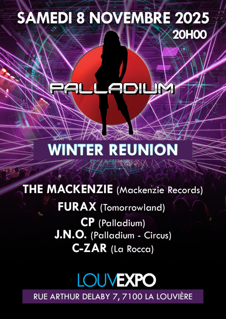 PALLADIUM REVIENT AU LOUVEXPO CE SAMEDI 8 NOVEMBRE 2025 POUR FETER SA WINTER REUNION AVEC LE MEILLEUR DU SON RETRO PALLADIUM ET DE GROS DJ GUEST – TOUS VOS HITS PREFERES DE PALLADIUM – ALL THE HITS ! UN SHOW VISUEL UNIQUE ET DES SURPRISES